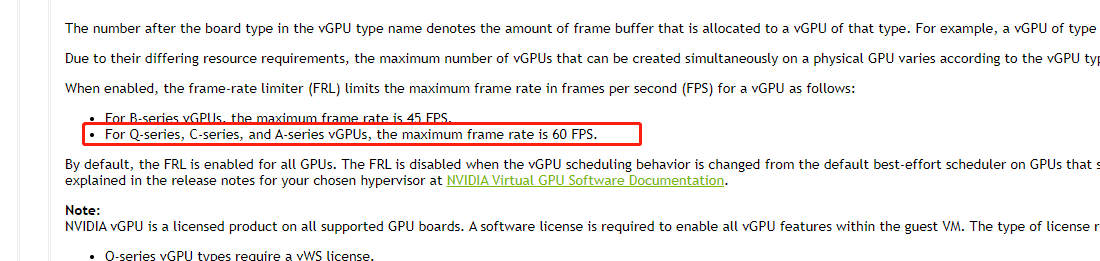 根据vGPU的类型,FRL的数值不同,如下(忽略图中的红框标注,这个图当时是给别人说事用的)